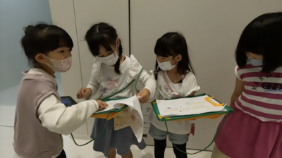 四角、三角、つなげる。子どもたちが工夫を凝らしながら楽しそうに取り組む様子が見られました。