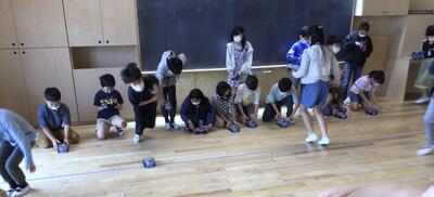 今年度も昨年度に続き,理科は専科の堀切先生にお世話になっています!空き教室で実験用の電気自動車を走らせる子どもたち!電池の数やカイロのつなぎ方によって走るスピードに違いが出ることを、遊びながら理解していきます!