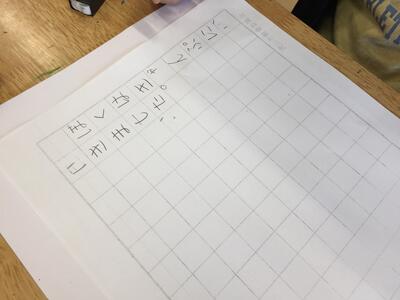 1年生の国語の学習で、「みんなに話そう」という学習があります。その発表で使う絵と作文をかきました。4,5月は文章を書くことがほとんどできませんでしたが、経験を重ね、書く力がついてきました。