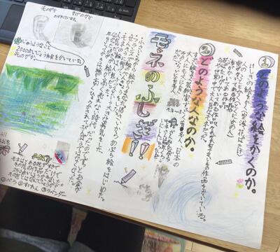 国語の学習で、好きなテーマでリーフレットを作りました!折り方やレイアウトを全て工夫できるようにしたことで、それぞれの個性が光る作品になりました!