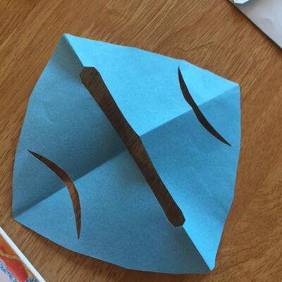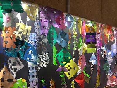 1年生の図工の学習で、七夕飾りを作りました。折り方や切り方を工夫して作品を作っていく学習です。