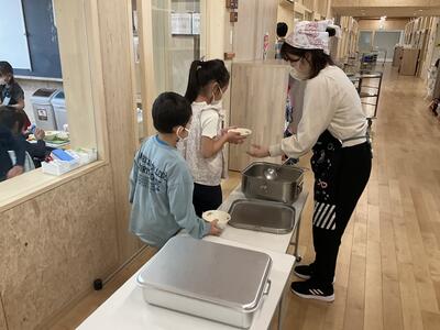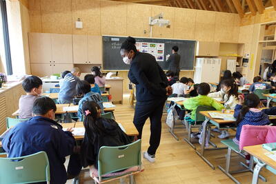 好きな食べ物の話をしたり、学校の好きな場所を話したりと、自然に会話を弾ませている子どもたちの姿が見られました。
