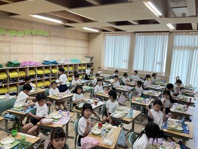 昨日より、1年生も給食が始まりました!静かに、自分達で準備をして、前を向いて静かに食べる・・・なんて、今までにはなかった経験だと思います!しかし!予想以上に落ち着いてしっとりとした雰囲気で給食の時間が流れていて驚きました!