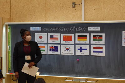 3組は外国語活動です!ALTのアイリーン先生も張り切っています!「ナマステ」「ニーハオ」「ハロー」など世界のあいさつが飛び交っていましたよ!