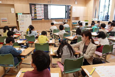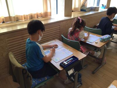 1年生のひらがなの学習も、終盤にさしかかってきました。ひらがなのおけいこを学習する様子は、集中力の高さが光っています!