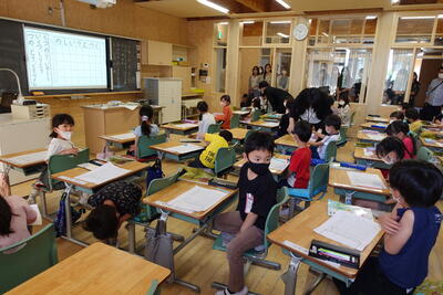 「お耳の検査だから、周り声が聞こえたら検査がうまくできないんじゃない?」と言う声かけに対して、「たしかに!しずかにしよう!」と気づいた1年生の姿に、学びを感じました。