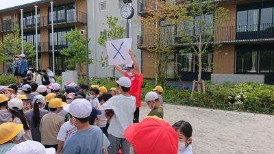 ↑児童会の子どもたちが学校の中のことを丸バツクイズにしてくれました!保健室は1回にありますか〜?