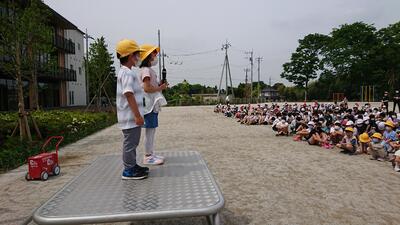 ↑456年生からメダルのプレゼントです!誇らしく首からかけています!