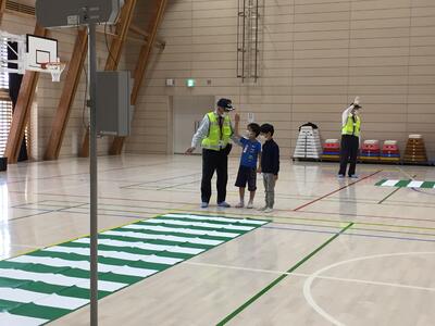 今日は体育館で、交通安全教室を行いました。1年生になり、登下校を子どもたちだけで行うようになったので、横断歩道の歩き方や交通ルールを今一度確認しました。