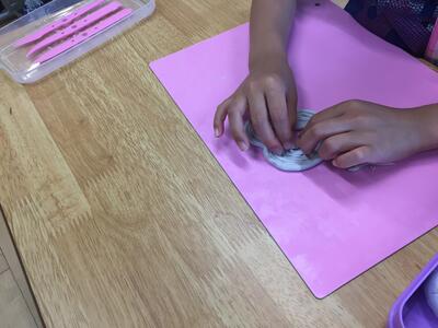 1年生の図工で、粘土を使う学習がありました。ちぎったり、くっつけたり、切ったり、丸めたり、子どもたちの発想力が豊に溢れる学習です。