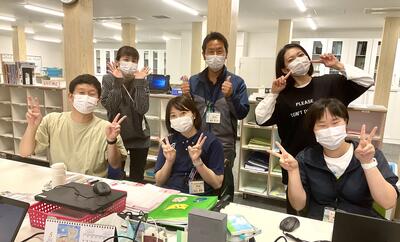 雨が降ったり止んだりという梅雨のような天気です。しかし、そんな天気に負けじと、職員は元気に明るく頑張っています!午後の職員室では、地域の方にいただいたキラキラマスクで揃え、週末もうひと頑張り!声をかけあい仕事をする職員のの姿がありました!