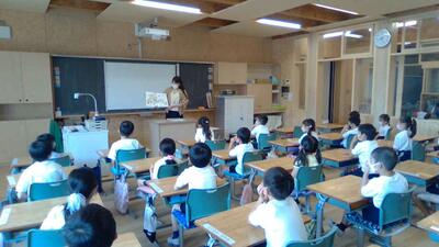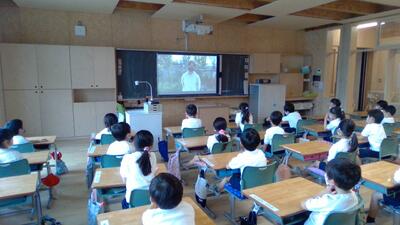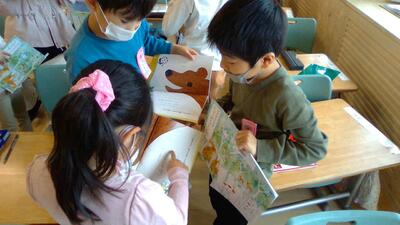 1年生にとっても初めてのおはなしふくろうでしたが、笑いあり、じっと見つめる瞬間あり、とても楽しんでいました。