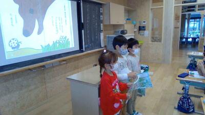 1年生の国語「くまさんとありさんのごあいさつ」で、音読発表会を行いました。くま・あり・ナレーターの3役に分かれて行いました。くまは声を大きく、でも優しそうに。ありは声を小さく、でも芯が強そうに。工夫を凝らして発表する姿が見られました。