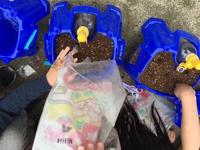 1年生の生活科の学習で、あさがおを育てていきます。今日はその一番最初の段階の、種植えを行いました。さつまいも、あさがおと、植物に愛情をもって育てていく心を養ってほしいですね。