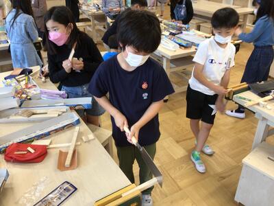 今週から図工で、木材をノコギリで切ったり、釘で打ったりして作品づくりを進めています!3年生の頃に習ったノコギリの使い方を活かし、慣れた手つきで作業をする姿がとても頼もしいです!一人一人が自分の思う良さを形にできるように指導していきます!