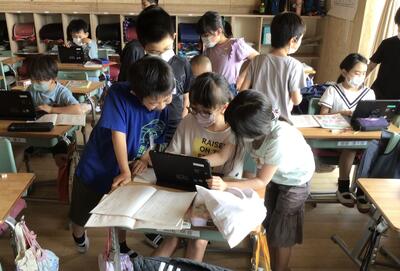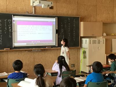 今日は、単元の導入場面で、文を読んでそれぞれが疑問に思ったことを話し合いました。班ごとに、話し合った内容をタブレットに打ち込み、オクリンクを使って共有しました。友達に向けて堂々と話す子が増えており、成長が感じられました。