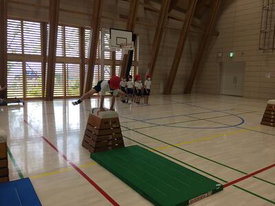 1年生の中体育では、跳び箱に入りました。手のつく位置や高さを考えながらどんどん挑戦しています!