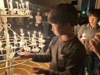 林間学園といえばキャンプファイヤーなわけで、全体での練習でも一番熱が入っていたと思いますし、授業参観では保護者の方にも見ていただいたり参加していただいたりしながら、この日に向けて期待を膨らましてきました!しかし、雨!大きな集会室に、高さ2mほどのツリー状の燭台が設置され、キャンドルサービスを行うことになりました!