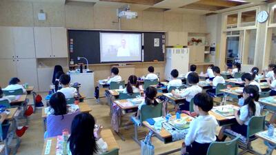 どうにか子どもたちに給食の時間を楽しんでもらうため、給食の時間は「くろ森チャンネル」を流すことに!黙々と食べながら、時には笑い、時には集中して見入っている子どもたちの姿が見られました。