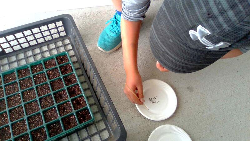栽培委員会は6年生1人、5年生2人の3人でスタートします。「おおぐろの森小学校をお花 だらけのきれいな学校にしよう。」というめあてをみんなで決めました。この日は3人でサルビアの種を植えました。