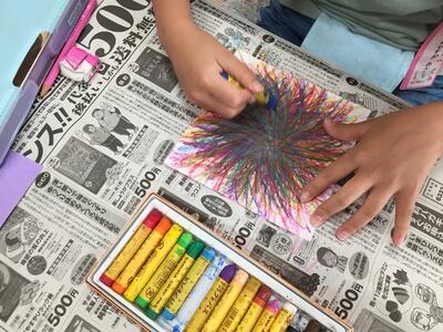 クレヨンやパスを使って、名前アートに挑戦しました。