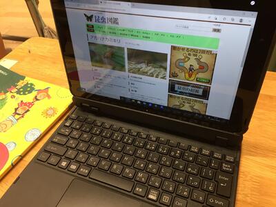 タブレットのオクリンク機能を使って、担任から配られたURLで調べ学習ができます。