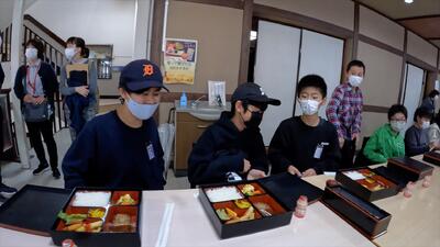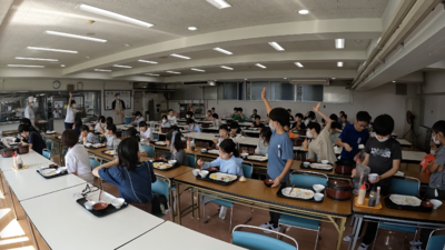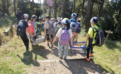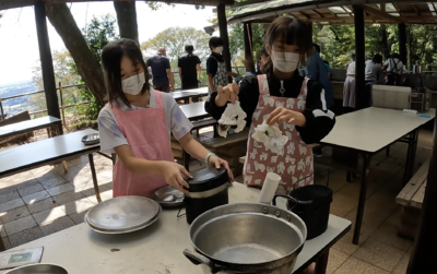 山ビンゴの後は、昼食です!関東平野を見渡せる山の中腹にある茨城中央青年の家ですが、本校からは1時間程度で行ける場所にあるので、充実した活動をおこなった後でもまだ12時!食堂は感染対策のために、全員が窓の外の景色を見ながらの食事になります。係の児童が、テキパキと仲間の食事を準備していきます!チームワークと素晴らしい働きぶりに施設の方も驚いておりました!