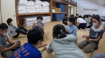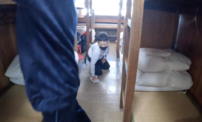 5年生は46人という少人数を生かし、今回の宿泊施設の中に2段ベッドの4人部屋の他、学級の仲間と交流ができるように室内ゲームやUNOトランプといったカードゲームができる15畳の和室を2つ借りてありました!日程をゆとりあるものにして、子どもたちの自由な遊びの時間を大切しています!時には担任も呼ばれ、一緒にわいわいと遊んでいました!恋愛トランプ初めて見ました!