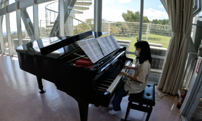 おそろいの紫色のリボンとマスクを身につけて、音楽部は発表会に臨みました!