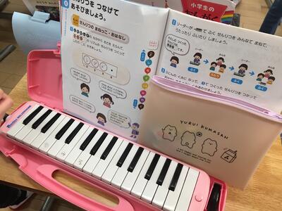 音楽の学習で、鍵盤ハーモニカを使って旋律作りをしています。