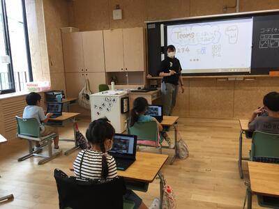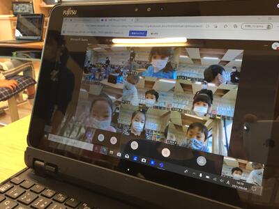 丁寧で根気強い説明のおかげで、今日は1年生が自力でチームスの会議室に入り、教室の中ですがオンライン会議を楽しみました!手を振り合ったり、先生とジャンケンをしたり!友だちの話したことが、昔の国際電話みたいに遅れて聞こえることが、とても楽しかったみたいです!