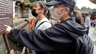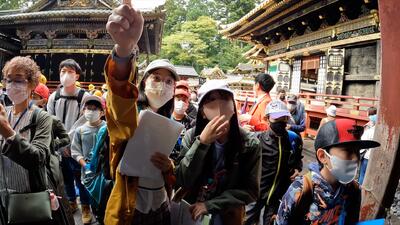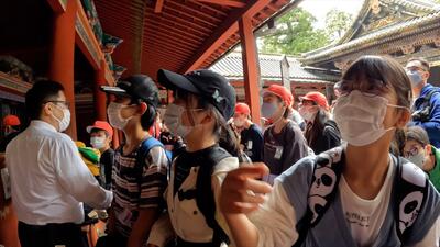 東照宮といえば、赤い服を着た伝統的なガイドさんがいらっしゃいます しかし!6年生は日光に来るために、分担して様々なことを調べ上げました!そして、ここ東照宮でも仲間によるセルフガイド方式で、それぞれの見どころの歴史や豆知識を次々と披露しながらの班行動が始まりました!校長が、子どもたちに「この柱はさあ・・」などと話しかけると、「それさっき、班の〇〇さんに教えてもらいました ごめんなさい」という返事が返ってきます!いいね!