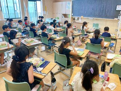本日より分散登校ではなくなりましたので、給食も全員でいただいています 学校生活において、感染リスクが最も高いと考えられるのは食事中です 1年生4学級の様子を取材に行きました!どの学級も、お話しせずにしっかりとした協力体制で、静かな食事ができていました!子どもたちには我慢をしてもらっていて心苦しいのですが、あと少しの辛抱と信じて、取り組んでいます!