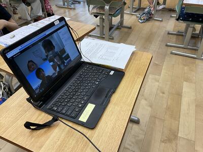 自宅でオンラインで授業を受けてくれている友だちもいます!2年2組では双方向通信で、先生が教室にいる友だちと同じようにオンラインの子にも問いかけたり、オンラインの子も発表したりと、うまく溶け合いながら授業を進めていました!