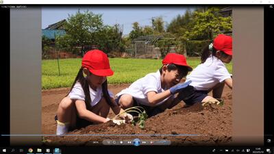 1年生がさつまいもを植える様子が流れました。