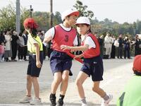 はじめの種目は全員リレーです!学級を2組に分けて、AチームBチームの2回戦行います!子どもたちの走っている時の真剣な表情!走る喜びが溢れている子どもたちを見ると幸せな気持ちになります!バトンパスでの子ども同士の目と目のコミュニュケーションや短い掛け声!バトンを渡した後のほっとした表情!見どころがいっぱいですよね!