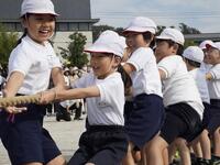 次の種目は綱引きです!綱引きって、大人になってからやったことありますか?全力で綱を引き続けるって見てるよりもずっと大変なんですよ!でも、写真を見直してみると、子どもたちは大いに競技を楽しんでいますね!どの子も綱を引いている時も、終わった後も、買っても負けても、すごくにこにこしています!競い合う友達がいるってありがたいとっても幸せなことなんだよね!
