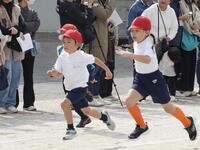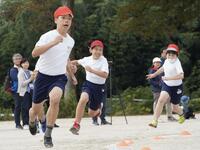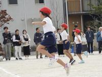 本校学年運動会シリーズのトリを務めるのは1年生!1年生は6学級あるので、学年をさらに2つに分けての運動会です!ちょっと寒く、今にも雨が降り出しそうな空模様だったのですが、立派な開会式や可愛らしくも凛とした選手宣誓に雨雲も遠慮したようで、全種目を公邸で滞りなく行うことができました!プログラム1番、運動会といえば徒競走です!目当ては「まっすぐ走ろう!」皆様子どもの頃を覚えておいででしょうか?人類は初めからまっすぐ力強く走れるわけではありません!目標に向けて、力強く大地を蹴って、なおかつ真っ直ぐに走れるようになるには、練習が必要なのです!写真を見てください!1年生ながら力強いこのフォーム!入学からこの半年で、こんなに逞しくなりました!