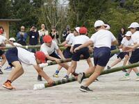 棒弾きの醍醐味その1は、スタートダッシュの勢いを活かして敵が棒に触れる前に棒をこちらに引き始めること!醍醐味その2は、みんなが狙っていない棒を見極めて、ひとり悠々と持ち帰ること!醍醐味その3は、正々堂々相手との引き比べに勝ち、敵を引きずりながら自分の陣まで棒を持ってくること!あちらこちらで繰り広げられる駆け引きと真剣勝負とで、見応え抜群の競技になりました!