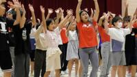 午前中、それはそれは濃い2時間のレッスンをこなし、給食を挟んで午後1時より再びレッスン開始!もうこの先は保護者の方を入れての本番のステージのための通し練習です!キャストさんたちのレッスンは、あれこれ指示するというよりも、とにかく「子どもがやる気になるような全力の手本をみせる」に尽きます! 子どもたちも、そのエネルギーを受け取って、未だかつてない集中力で頑張っています!そして本番!たくさんの人が観にきてくれていますよ!