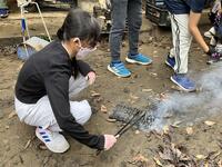 安全のため、着火の瞬間だけは大人が行います。細い薄い板は燃えやすく、やってもやってもつかないということはありません。しかし、簡単にまあまあ大きな火がおこったように見えても、最近雨がちということもあり、油断するとふっと火が消えてしまうようです。扇いだり、細い板と厚い板を様子を見ながら調整したりと、子どもたちも少しづつ炎との付き合い方を学んでいったようです。