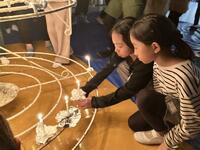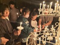 火の神は、火の子どもを3人連れています。絆の火、挑戦の火、協力の火 それぞれの火を火の神から分けてもらうときのよく通る素晴らしい声!その後、キャンドルサービスで、一人一人の蝋燭に小さな炎が次々と灯されていき、すっと集会室が幻想的な雰囲気になりました。その後、一人一人がツリー状の燭台に蝋燭を立てていき、薪が勢いよく燃えるキャンプファイヤーとは全く別の、とても魅力的なキャンドルツリーが出来上がりました!美しい!!