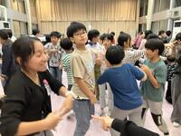 昨年まで、これまでの担任の先生がサプライズで登場していた火の神ですが、その流れでいうと今年はN江先生かと思いきや、輪の中に加わっています。さあ誰?闇の中で行うキャンプファイヤーと違って、暗くしているとはいえ、やはりさまざまな灯りが漏れてくる室内なので、今年の火の神が教頭先生であることは、子どもたちにあっという間にわかってしまいました!