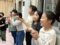 インドアビンゴを終えた後も、ちょっと時間があったので、ミニレクをすることになりました!まず、伝言ゲームが始まりました!6,7人の縦のチームをつくって、先頭から文章を回します!お題として出されたのは、なんと林間学園のめあてでした!ということは、通常の伝言ゲームと違い、それを全員が覚えてさえいれば、簡単に後ろまで正確に伝わるはず・・・ですが、まあ結果はご想像通りでありまして・・・がんばれ5年生!
