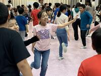 館内の説明や布団のたたみ方など丁寧な説明を受けた後は、インドアビンゴの始まりです!小雨なので山ビンゴも行けるかなと思いましたが、斜面ばかりのコースなので、施設の方からストップがかかりました!(当たり前!安全最優先!)ビンゴ係がしっかりと説明の会を進めます!司会のI崎さんは、堂々と立派な司会ぶりプラス、施設の人の話が終わりそうだという気配を察して立ち上がって、スムーズに進行するようしっかり気を配りながらの仕事ぶりが光りました!