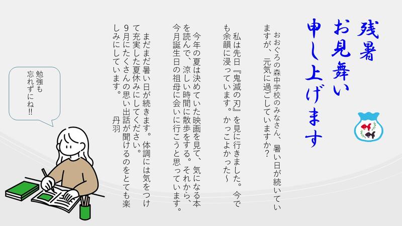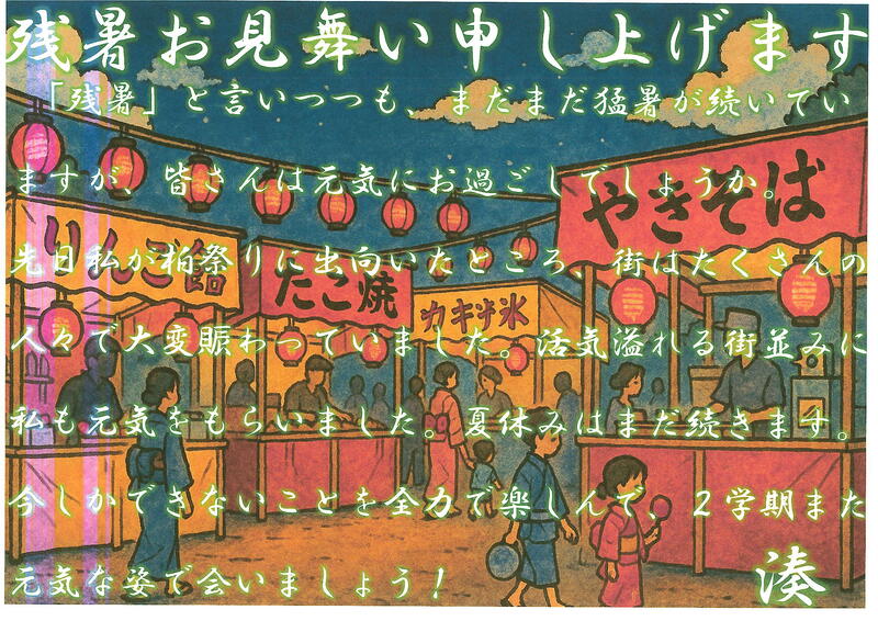 私たちも皆さんの夏休みの思い出を聞くことを楽しみにしています