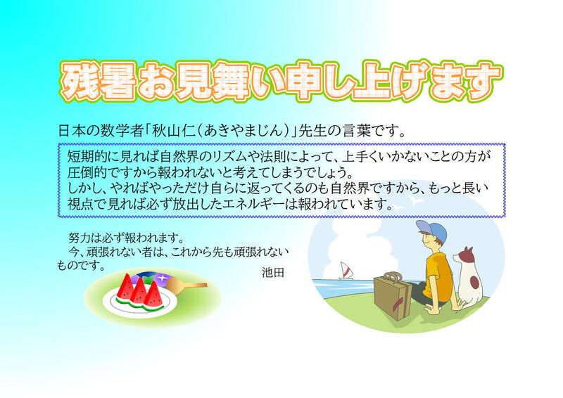 そして、2学期開始まで、残り10日です。少しずつ、心や身体の調子を整えられるといいですね