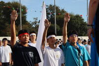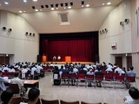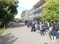 さて、夏休みも残すところ2週間。夏休み後半の部活動も今日から始まり、各活動場所で元気に取り組む姿が見られました。さらに今日から始まるのが体育祭に向けたダンスリーダーの練習です。