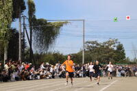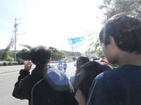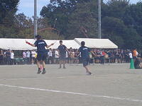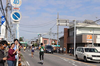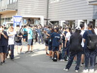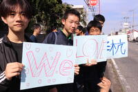 外では陸上部の選手たちが携帯で映像を見ながら応援する姿がありました。