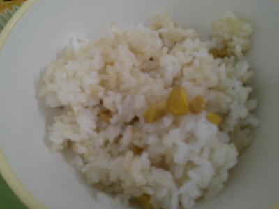 給食では、とうもろこしをバターとしょう油で焼いて、炊きたてのご飯にさっくり混ぜ合わせました花丸とうもろこしの甘みとバターじょう油の風味を味わいながら、食べましょう笑う